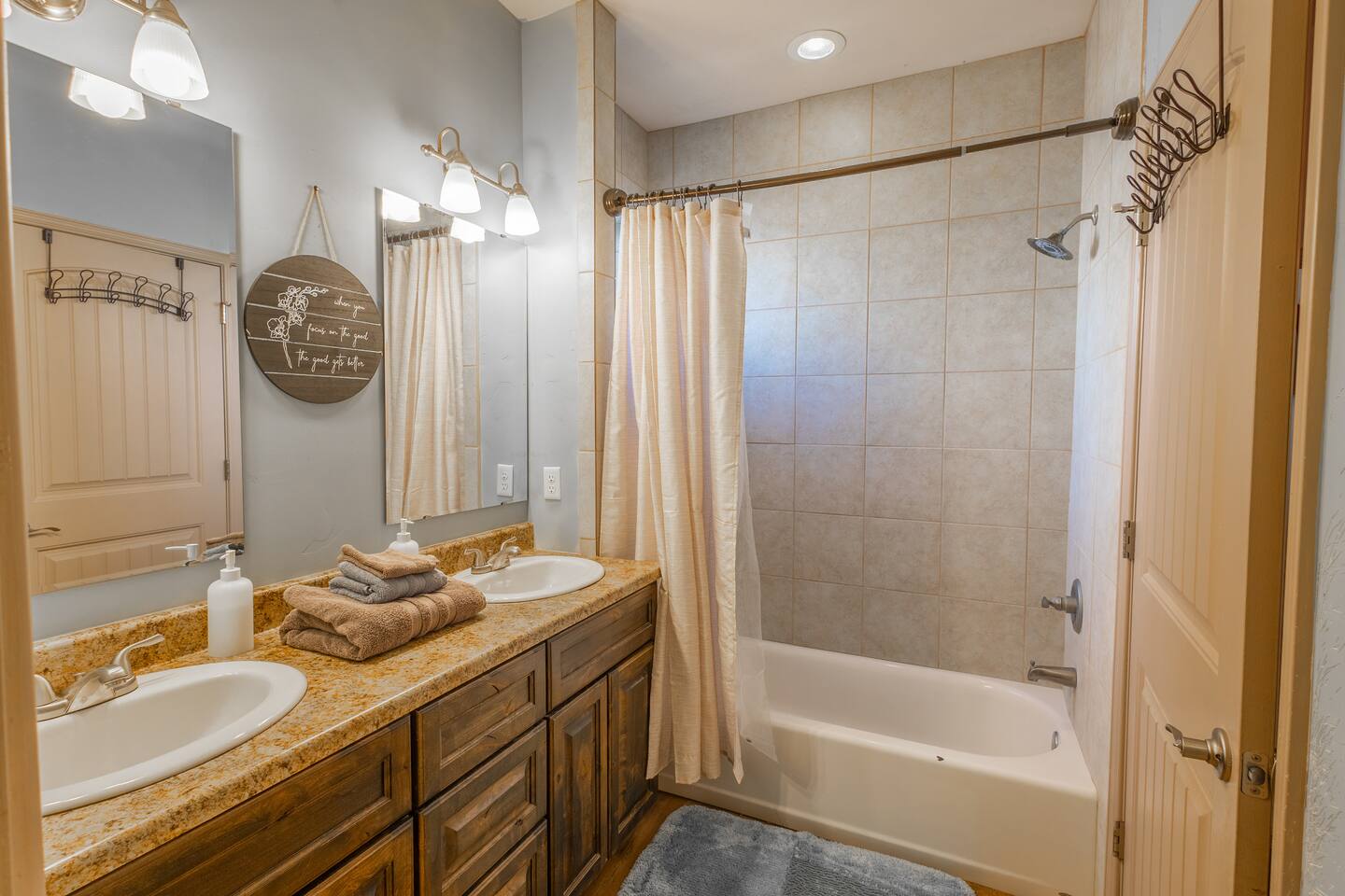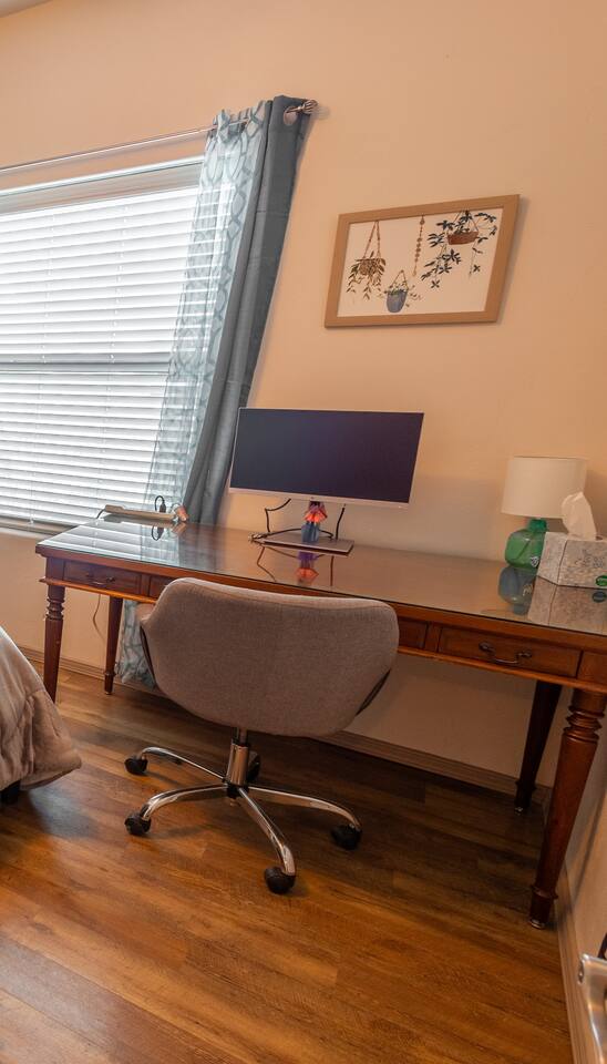 This is a two story house. The downstairs is offered in this listing. The upstairs is a separate house with its own entry through the backyard. Here is the link to the upstairs Airbnb listing https://www.airbnb.com/rooms/949506552962450295?guests=1&adults=1&s=67&unique_share_id=40f72b40-63b8-46f6-98fa-bc1d9847c24b The backyard would serve as a shared space if guests are staying both downstairs and upstairs. *THIS DOWNSTAIRS SPACE* *Bedrooms - 3 bedrooms* There are three bedrooms with comfortable beds, premium sheets, and pillows. In addition, every bedroom has a ceiling fan, and closet with hangers and shelves. Main bedroom: ☑ King-size bed ☑ Ceiling Fan ☑ Darkening Shades ☑ 55-inch Smart TV ☑ Ensuite bathroom with walk-in shower with bench & two shower heads & two separate vanities with sinks ☑ Walk-in closet ☑ Iron ☑ Ironing Board ☑ Height-adjustable desk or a sit-stand desk ☑ Computer monitor Bedroom 2: ☑ Double-size bed ☑ Ceiling Fan ☑ 50-inch Roku TV ☑ Desk ☑ Computer monitor ☑ Desk chair Bedroom 3: ☑ Double-size bed ☑ Twin bed ☑ Ceiling Fan ☑ 50-inch Smart TV ☑ Toys and books for children *Bathrooms* We provide soap, shampoo and conditioner, and lots of fluffy towels. *Laundry* The laundry room is stocked with detergent. *Living room/Dining Room* Dining area with 6 seater table. The great room is an open-concept floor plan with lots of natural light and soft lighting, eclectic design with pops of color. ☑ 65-inch Smart TV ☑ Games ☑ Workspace with desk and chair *Kitchen* The kitchen is fully stocked with everything needed to whip up a delicious meal and pantry. In addition, coffee and tea are provided, as well as basic kitchen supplies. ☑ Gas stove and oven ☑ Pot filler near stove ☑ Coffee maker ☑ Tea kettle ☑ Microwave ☑ Fridge + Freezer ☑ Dishes, glassware & utensils ☑ Serve ware ☑ Cookware & bakeware ☑ Pots and pans ☑ Toaster ☑ Blender As well as... ☑ Complimentary coffee ☑ Complimentary tea ☑ Basic kitchen supplies such as sugar, spices, oil, etc. *Backyard* Step into the enclosed private backyard and discover a hidden paradise! A tranquil garden awaits, complete with the soothing sounds of a pond where goldfish and koi gracefully swim. Take in stunning mountain views as you relax under the Pergola with the fire pit and outdoor seating furniture. Fire up the grill for a delicious meal and sit at the picnic table. The fish thrive naturally on the algae in the pond, so we kindly ask you to enjoy their beauty without feeding them. This serene retreat is sure to make your stay unforgettable! ☑ Garden ☑ Gas Grill ☑ Grilling utensils (inside in the kitchen) ☑ Picnic table ☑ Fire pit ☑ Pergola ☑ Outdoor furniture ☑ Pond ☑ Koi and goldfish