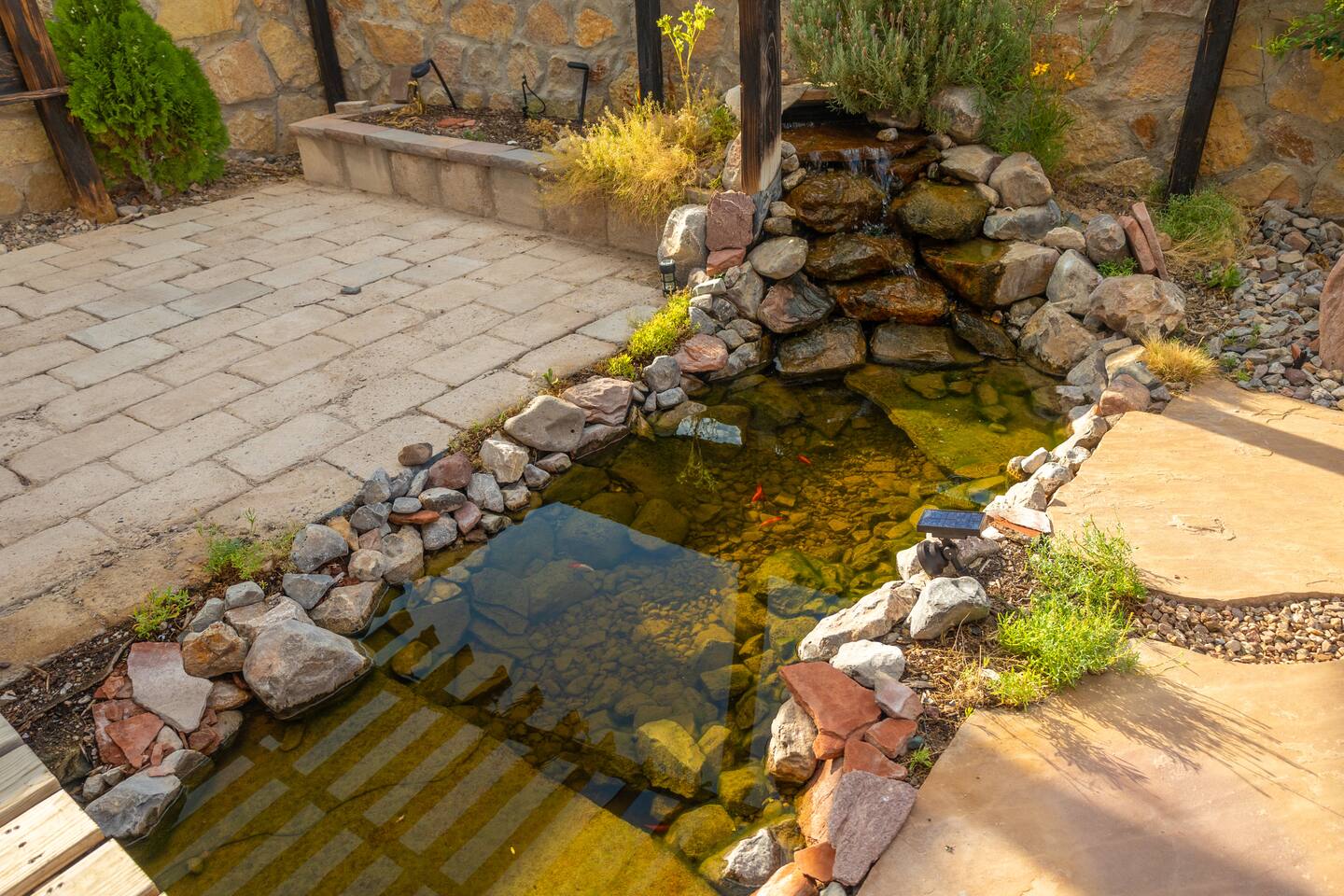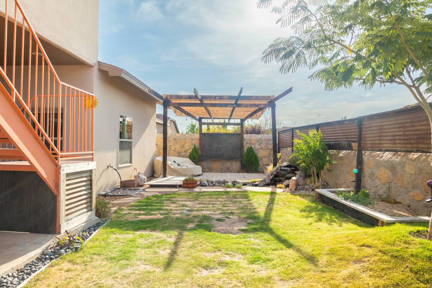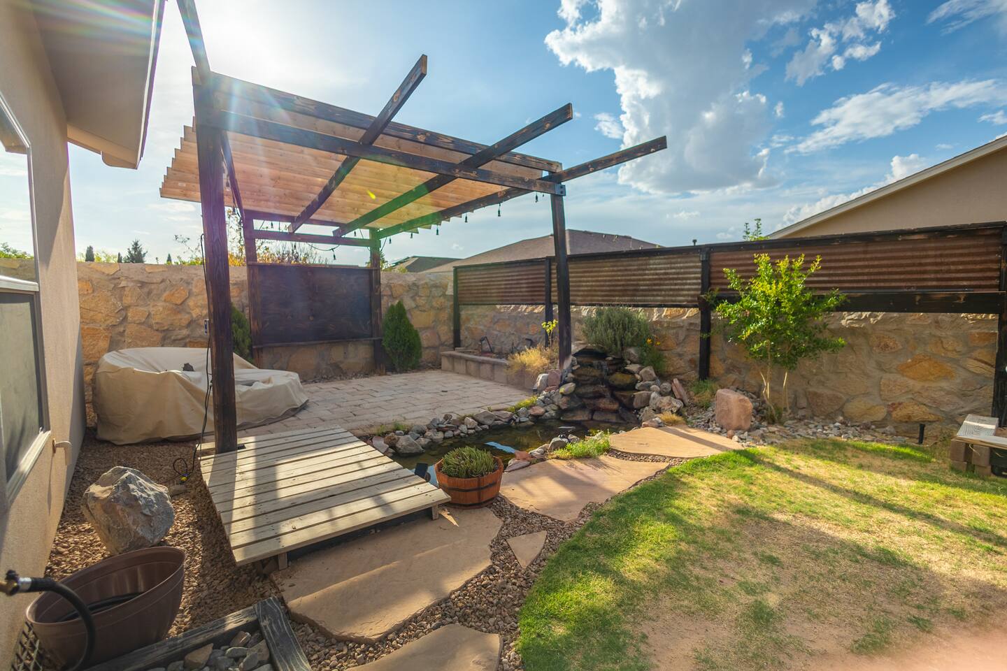 Escape to a colorful desert oasis, ideal for work trips or family getaways! Conveniently off I-70, you're minutes from White Sands, NASA, NMSU, and local amenities. Inside 3BDRM/2BA, enjoy cozy spaces with a fully stocked kitchen, Wi-Fi, smart TVs & multiple workstations. Outside, relax in a backyard paradise with a fire pit, serene pond, grill, garden, pergola, and breathtaking mountain views. This vibrant retreat has everything you need for comfort, convenience, and unforgettable memories!
